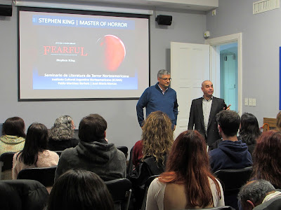 Entre el jueves 5 y el domingo 8 de septiembre de 2019 se llevó a cabo la 1° Feria del Libro Ezeiza en la Casa de la Cultura (Zapala y Corrientes, La Unión), con una variada agenda de actividades. El sello Muerde Muertos estuvo presente con un stand (junto a TirNanOg, Cinefanía, Cuarto Menguante, Ignotas y otros sellos amigos), y tuve ocasión de brindar la charla taller Stephen King: Maestro del Terror y coordinar una entrevista pública a Sergio Olguín y Juan Carrá, acompañados por un público atento y participativo. Agradezco a Pablo Ruocco, a Leticia (por la asistencia en la charla sobre Stephen Kinh), los alumnos del Taller de Escritura y Literatura y la Secretaría de Cultura y Educación de la Municipalidad de Ezeiza, a cargo de Ezequiel Díaz Prado, por la organización de esta gran fiesta de los libros.
